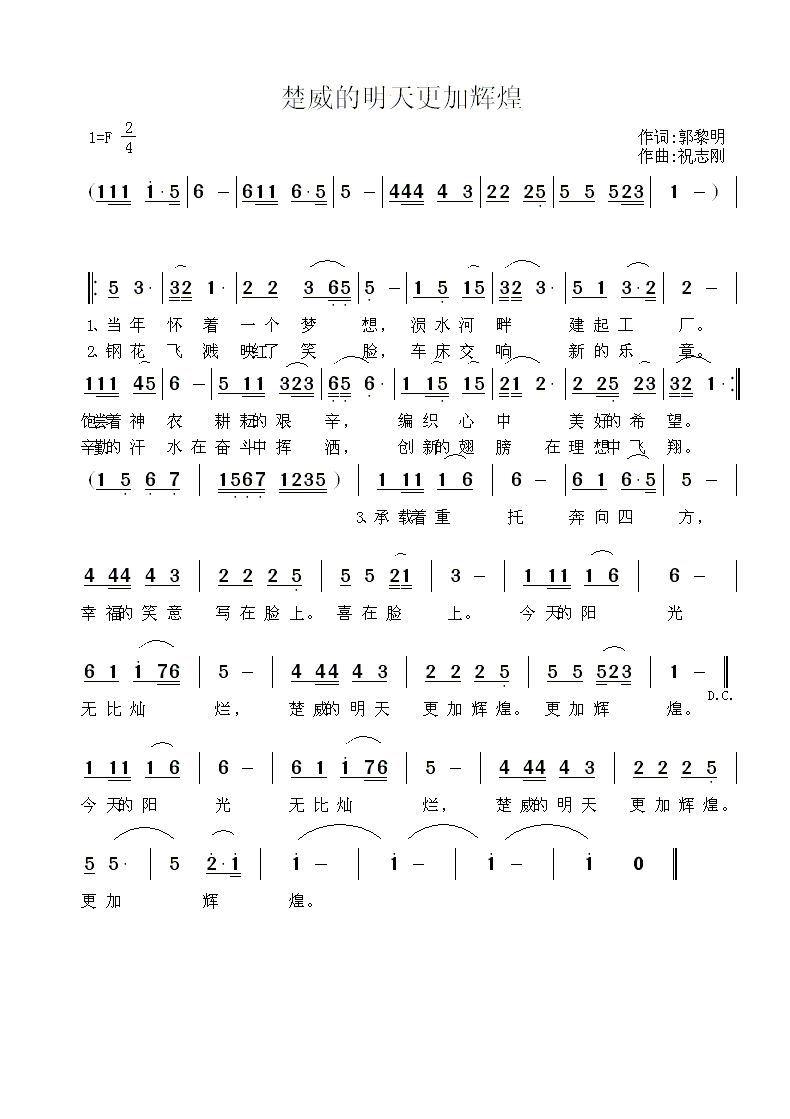 三環(huán)鑄造之歌--楚威的明天更加輝煌(詞、曲)